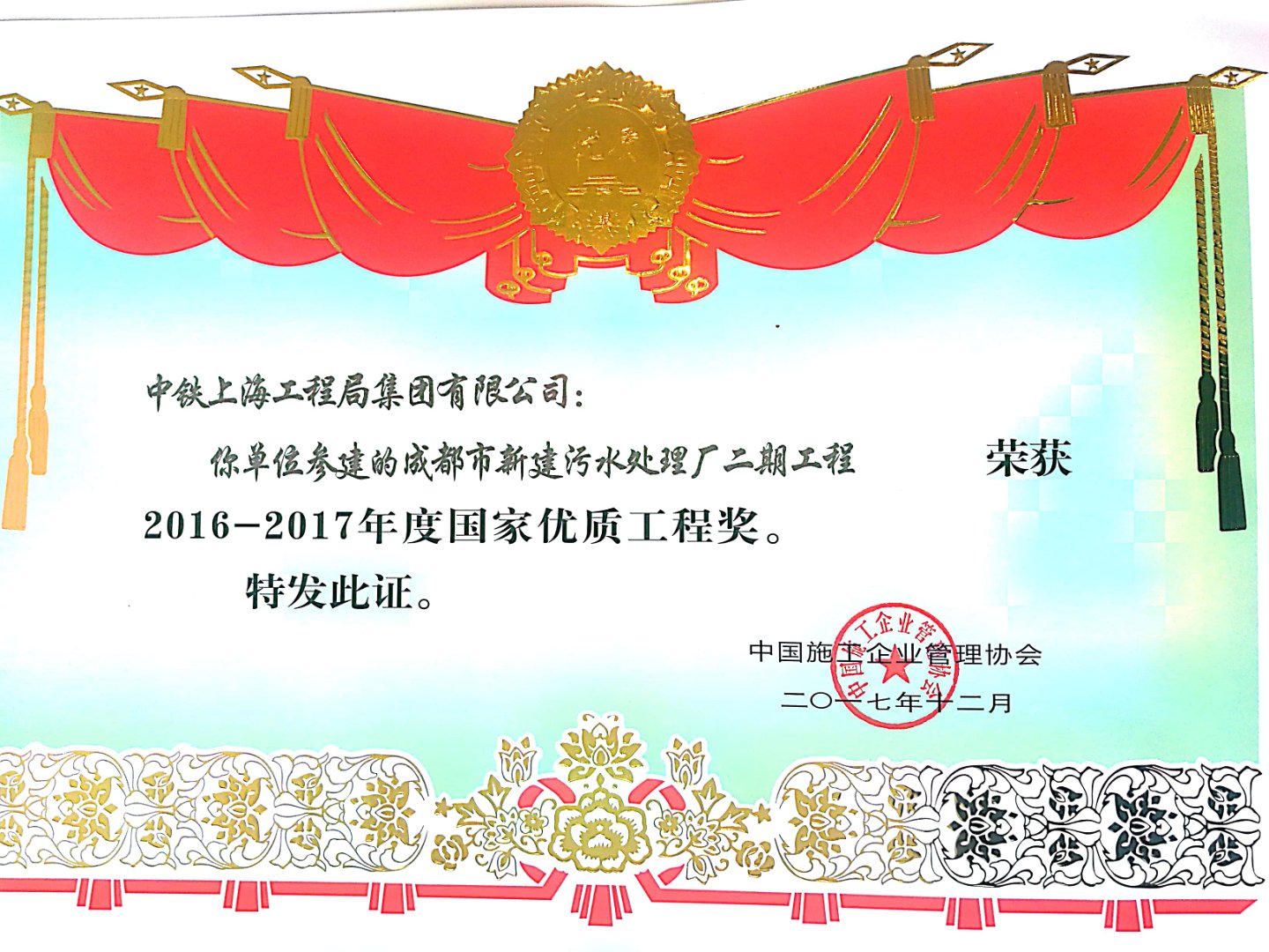 武漢梁子湖項目榮獲中施協工程建設質...